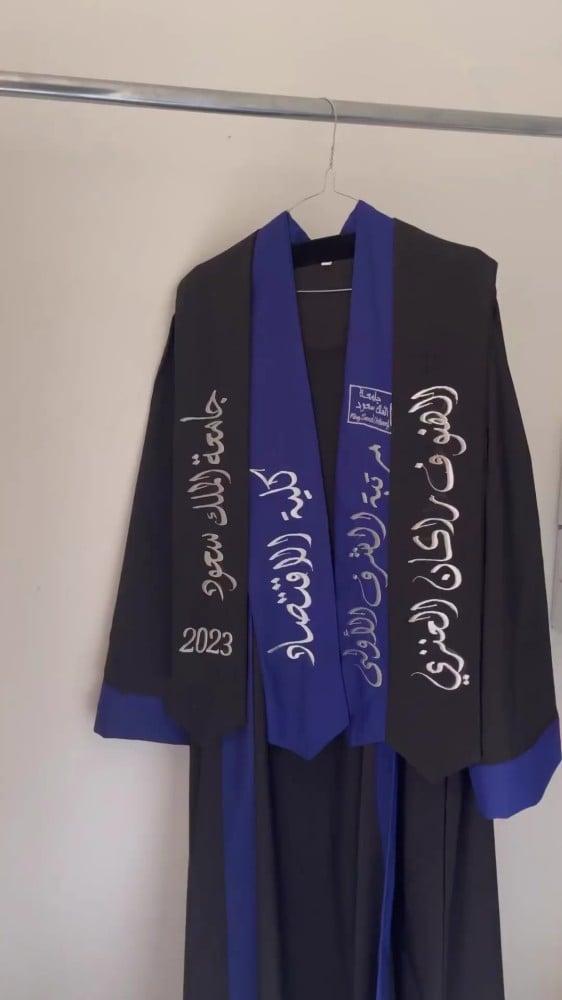 عبايات تخرج جامعة الملك سعود عباية تخرج 2024 تفصيل العباية و تطريز الوشاح والقبعة حسب الطلب